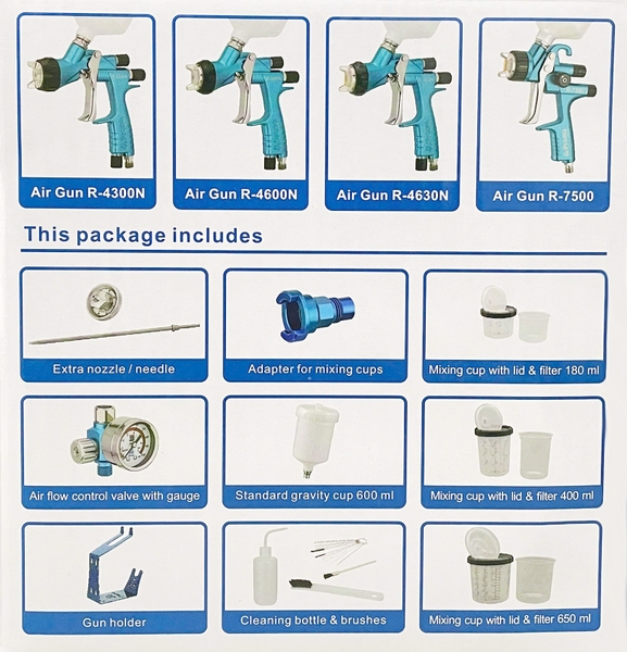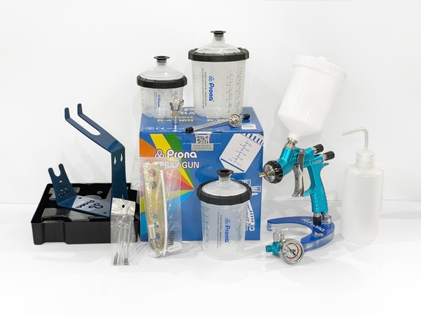 Thuộc chương trình khuyến mãi của Prona nên được tặng kèm kim béc 1.5mm, cốc dùng một lần, giá đỡ súng, cờ lê